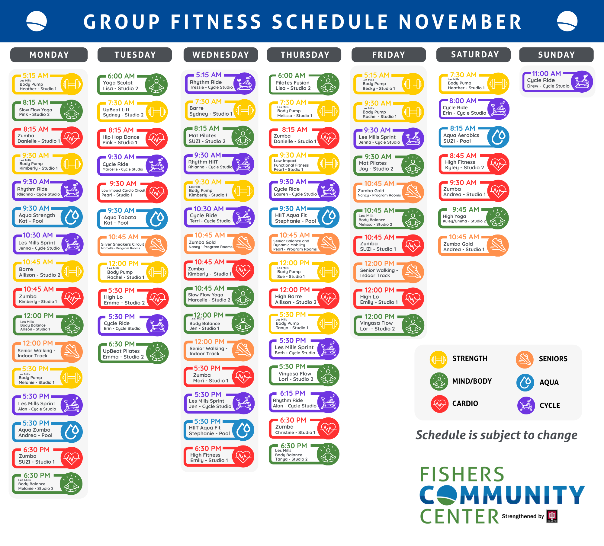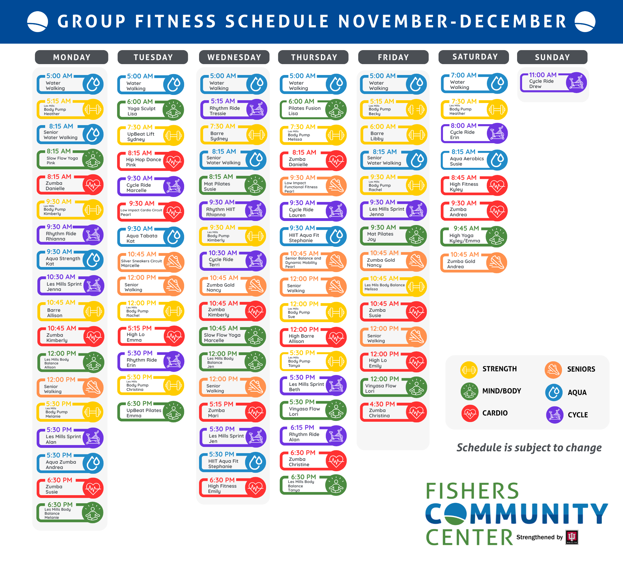 Check out the schedules below to see what group exercise classes and senior programming we will be offering starting in November!