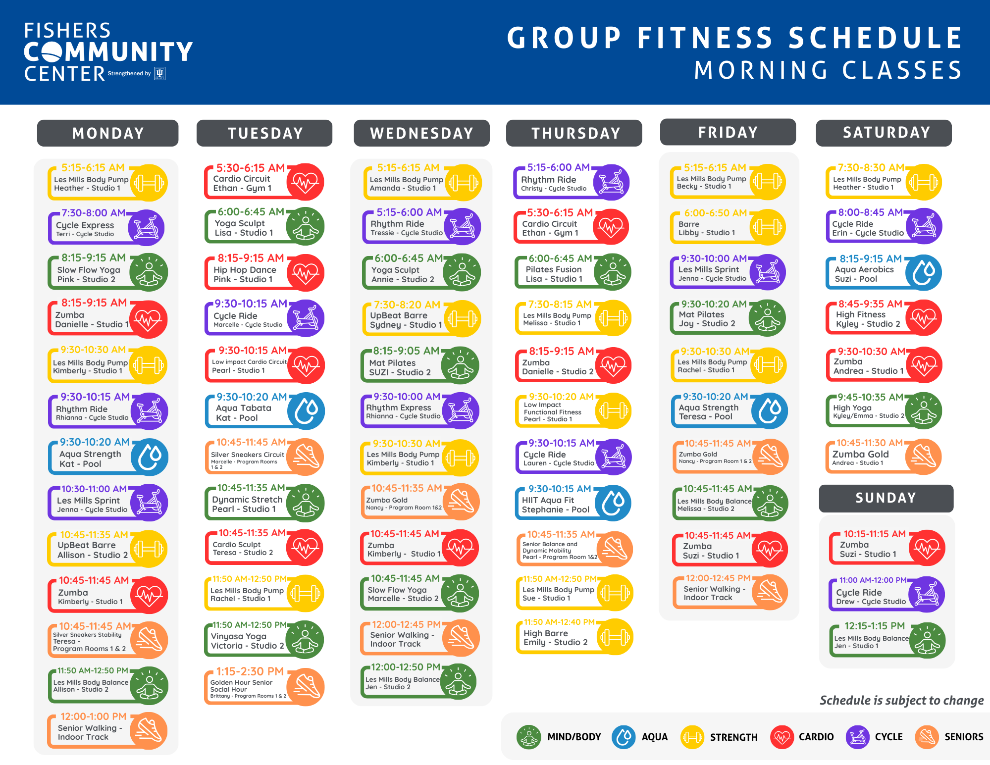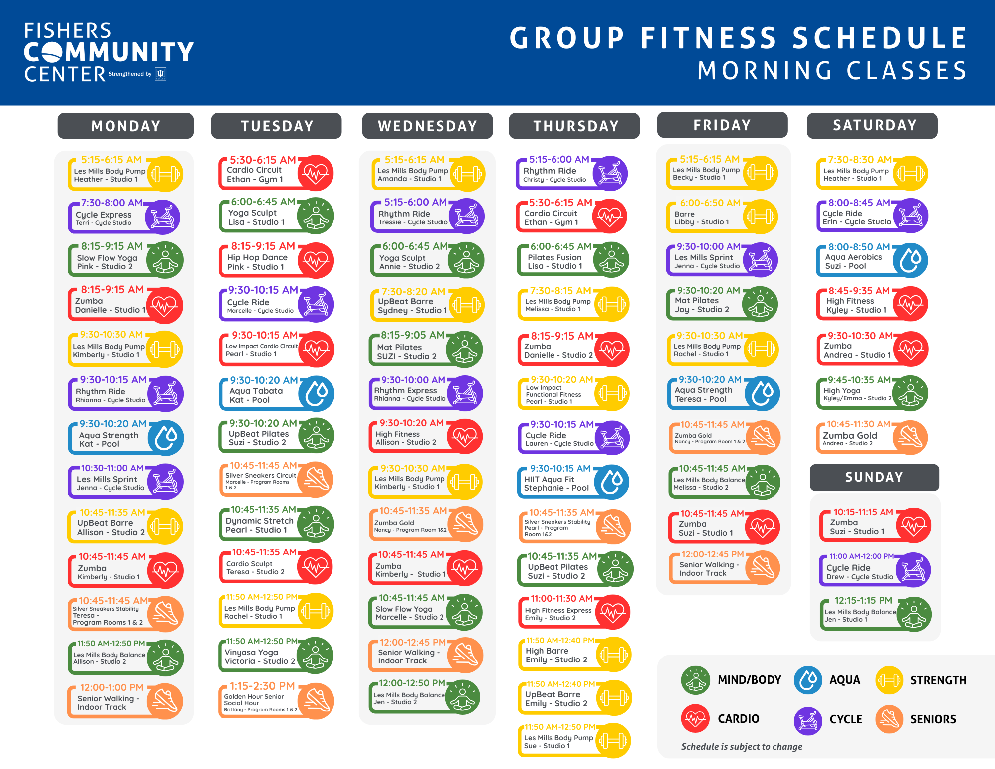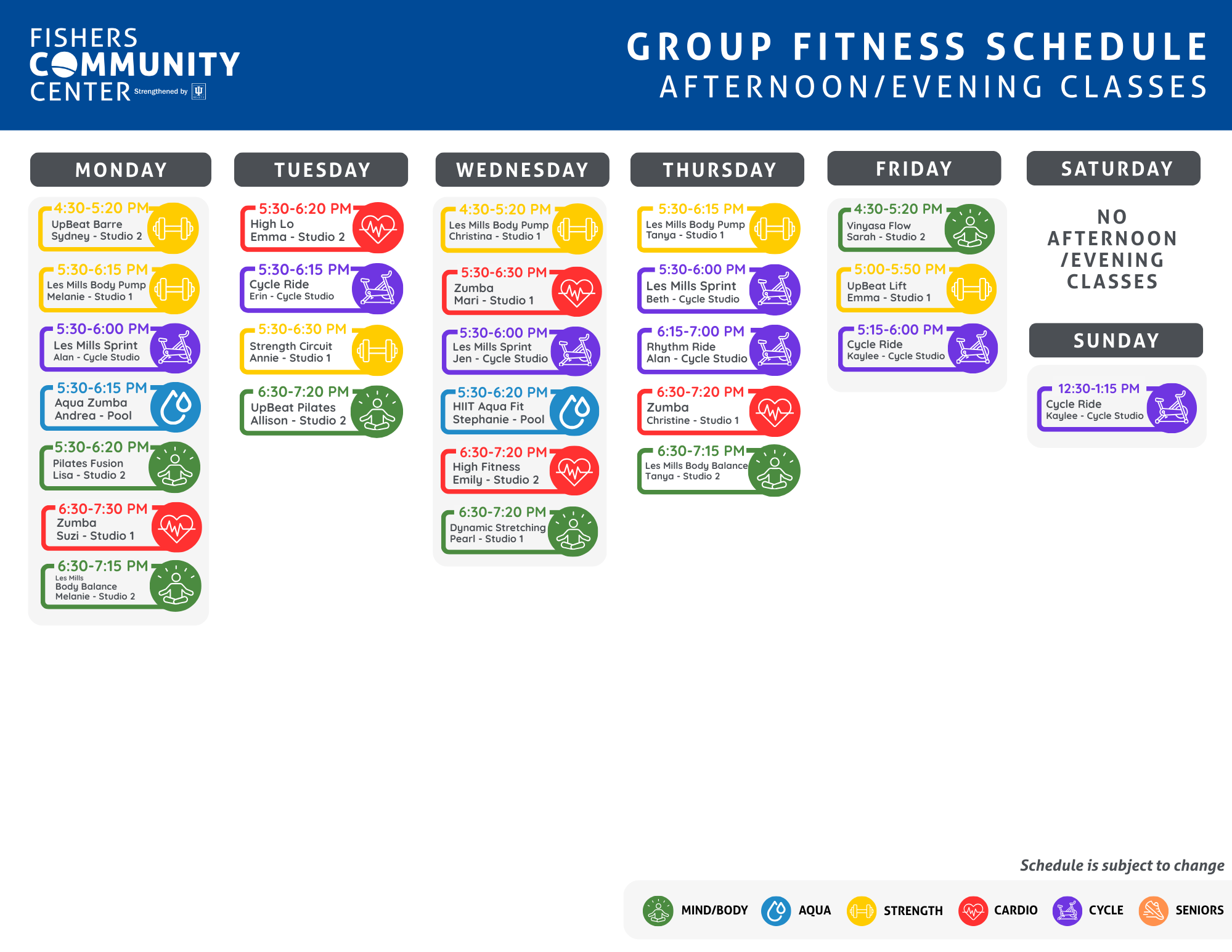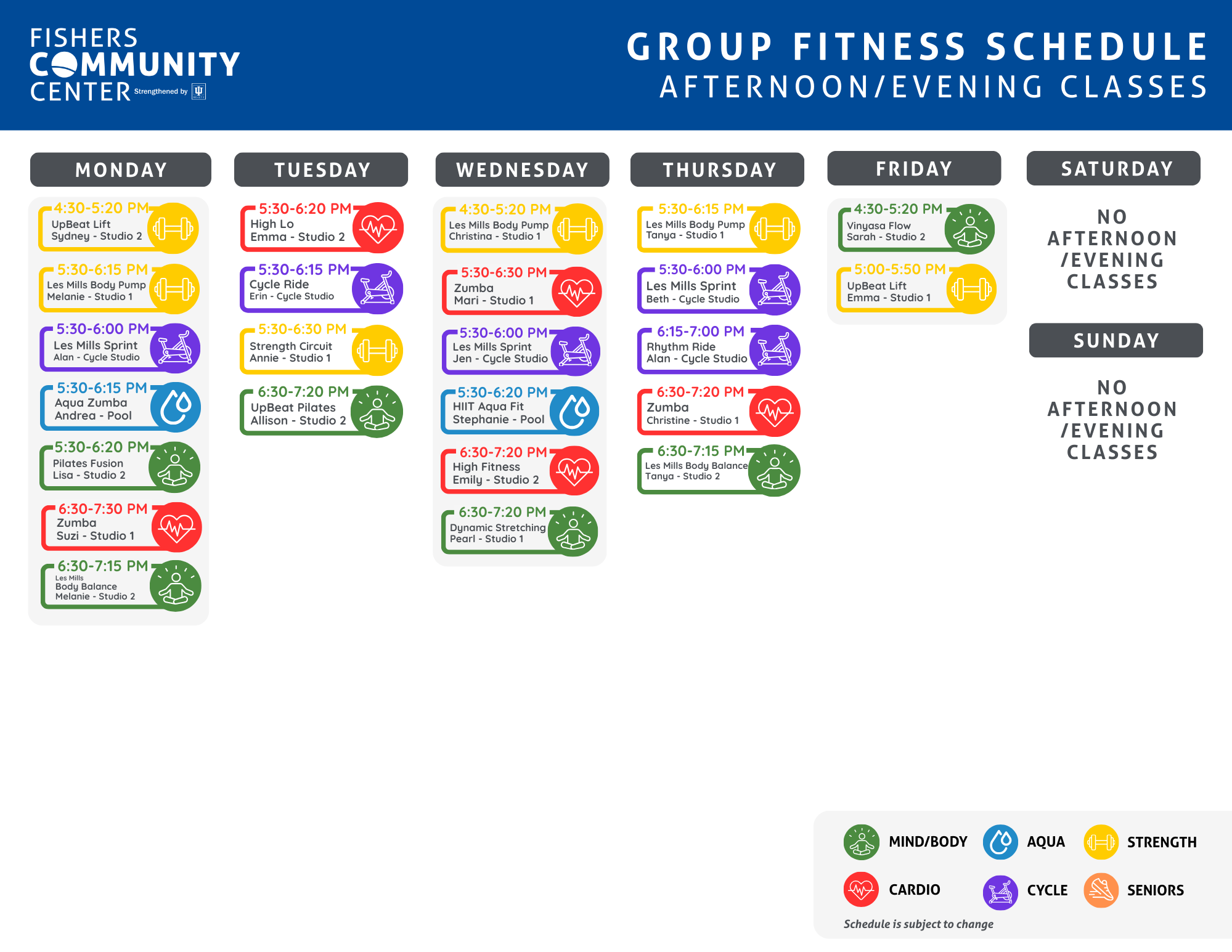 - Click here to access the online group exercise schedule