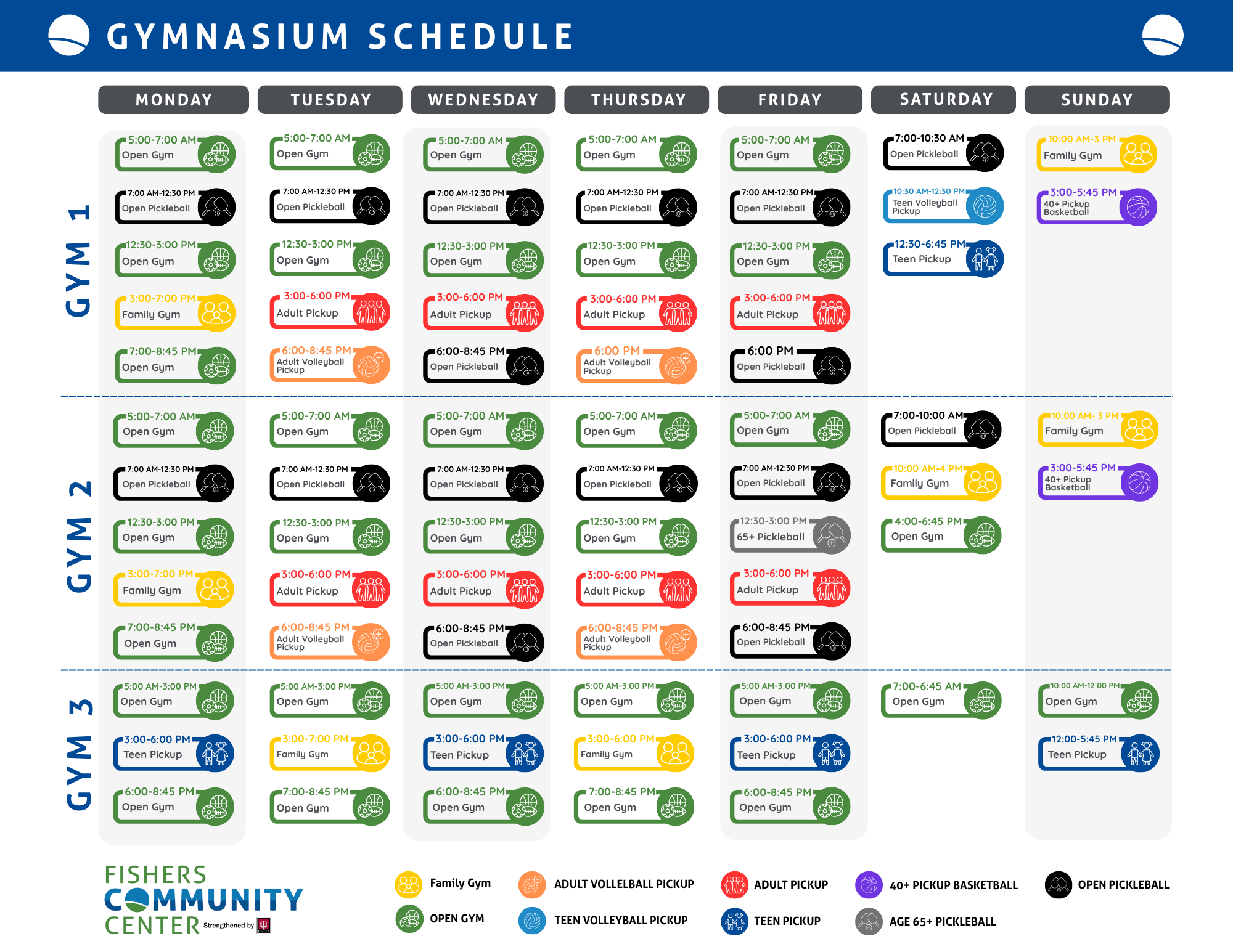 If the gym isn’t in use for its planned activity, it becomes open gym.