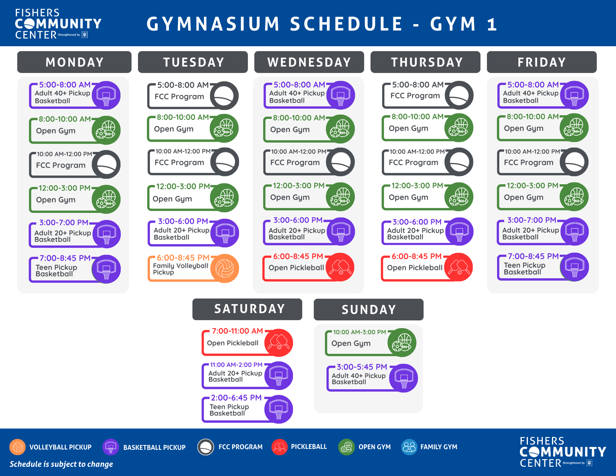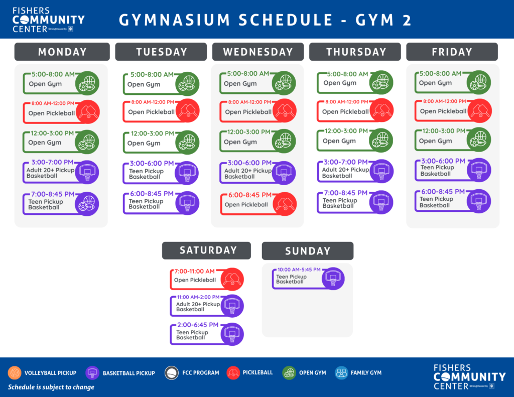 Check out the schedule below to see what we offer in our sports courts!