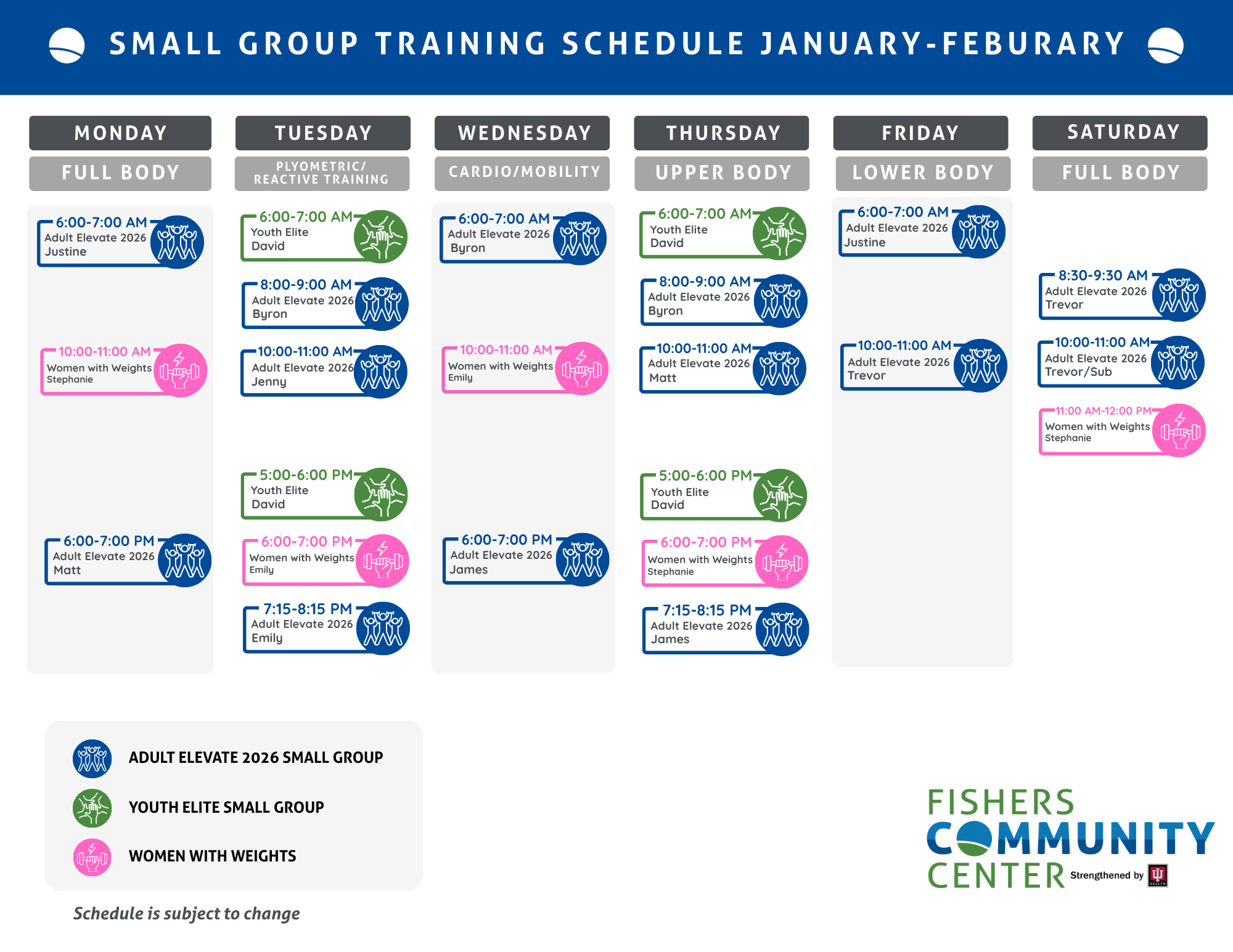 We’re thrilled to announce that our Small Group Training programs officially kick off in January 2026! To celebrate, we’re giving our members an exclusive sneak peek with FREE pop-up classes in December 2025. See the schedule below.